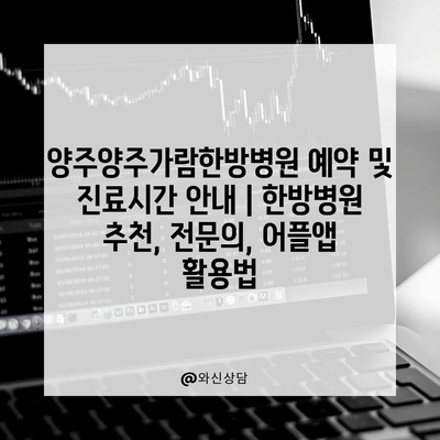 양주양주가람한방병원 예약 및 진료시간 안내 | 한방병원 추천, 전문의, 어플앱 활용법