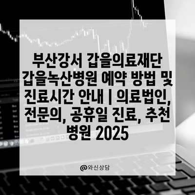 부산강서 갑을의료재단 갑을녹산병원 예약 방법 및 진료시간 안내 | 의료법인, 전문의, 공휴일 진료, 추천 병원 2025