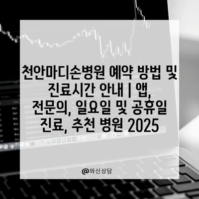 천안마디손병원 예약 방법 및 진료시간 안내 | 앱, 전문의, 일요일 및 공휴일 진료, 추천 병원 2025