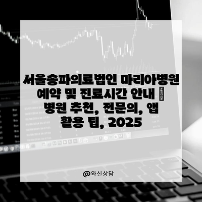 서울송파의료법인 마리아병원 예약 및 진료시간 안내 | 병원 추천, 전문의, 앱 활용 팁, 2025