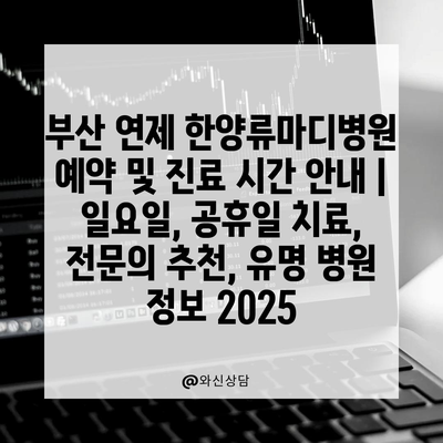 부산 연제 한양류마디병원 예약 및 진료 시간 안내 | 일요일, 공휴일 치료, 전문의 추천, 유명 병원 정보 2025